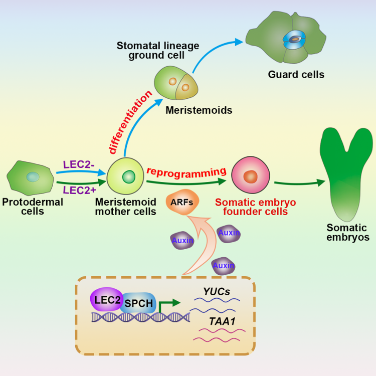 如何在完整植物中形成单细胞体细胞? 9月16日,流行的学术杂志“细胞”发布了中国科学家在线科学研究的结果,首次宣布了整个过程。这项成就不仅可以解决将科学界超过一百年的“植物细胞通用”机制的奥秘,而且还为提高遗传产量和出色的再生提供了新的理论支持。气孔前体细胞发展中两个路径的模式图。受访者规定,“植物细胞多能性”的概念是在1902年提出的,也就是说,植物细胞可以去分化以施肥的卵并形成类似于受精卵的所有强大的干细胞,然后在完整的植物中发展,但n n n n n n Nocult nocular机制尚未解决。为了发现这个谜,自2005年以来,张教教授领导的科学研究小组山东农业大学的亨开始探索拟南芥作为研究的对象。在过去的20年中,该团队最近建立了一个实验技术系统,用于直接开发胚胎中的单个体细胞,以及一个稳定的系统,用于激励一个来自一个细胞的体细胞胚胎发生,并首次发现细胞多能激活的“开关”是大量蜂胶激活的阶段。生长素。已重新编程以产生所有有效干细胞的分子网络调节的植物体细胞。受访者提供了切割技术,例如Elek显微镜扫描术,高级单细胞顺序,显微镜下的转录组顺序和实时成像。研究人员第一次获得了分裂单个植物细胞的整个过程,直观地证明了细胞刚度的“单细胞来源”,并对学术界的长期怀疑做出了响应。通过深入研究,该团队找到了触发细胞多能性的“密钥”:叶子气孔前体细胞独有的基因SPCH,它们是用高度表达的基因LEC2人为诱导的,两者一起生成“分子开关”。张海说:“这就像一个锁需要两个钥匙,两者都需要需要。”张海教授(右)和Su Yinghua教授讨论了。面试官对Su Yinghua的浪费是山东农业大学的论文和教授的事实之一,他介绍了该团队已经完全记录了细胞重塑细胞的完整道路,并表达了命运分叉的关键点。在转化从“普通细胞”到“所有强大的干细胞”转化的临界状态下,细胞经过深层的染色质修复,并且大量安静的基因逐渐活跃,并且细胞命运的轨迹是如此分叉,打开了。e建立通用的门。这项研究已全面评估了单个体细胞植物重编程以形成所有潜在干细胞的分子机制,并在世界上首次振兴完整的植物。中国科学院的学术学者中康认为,这项研究不仅加深对植物细胞的通用机理的理解,而且还为破坏农业生物技术的长期“再生瓶颈”开辟了新的道路。据报道,该系统目前与小麦,玉米和大豆等农作物的实验并行进行。