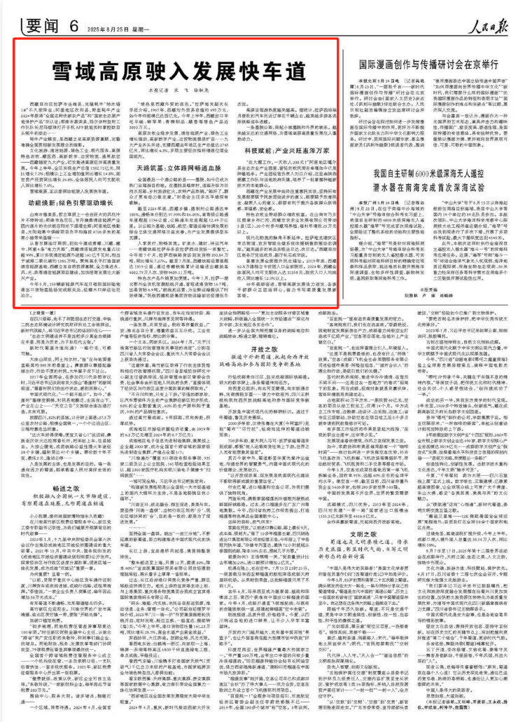 “人民日”(2025年8月25日,第06页),西藏自治区拉萨市Dangxiong县,克隆牛“ namcuuo 1#”尚未出生; Gaizen县,Ali区和野生血管行业获得了2024年的“国家流行和特殊新农产品”和“国家生态起源保护产品”的双重认证; Nierong County,Nimadunzhu,Nimadunzhu是Maerza Village村的工作组的队长,可以通过打开移动应用程序来控制道路的动态 - Yaks Yaks ... Yak行业的转型是基于西藏的微型群体,基于基于endow的领先和全面实施和充分实施和充分实施。文化旅游,清洁能源,绿色工业,现代服务,农业和动物婚姻的悬崖特征,藏族医学,高科技数字,边境贸易和物流以及一般航空西非锚定九个主要产业,以有效地促进高质量的悬崖经济发展精神。在今年上半年,该地区的GDP达到1382.72亿元人民币,增长了7.2%;额外的工业量表行业同比增长14.8%,固定资产投资同比增长24.8%,所有居民的人均可支配收入同比增长7.6%。白雪皑皑的高原以激增的能量进入快速的线路。动能更新:绿色发动机驱动增长。在Zhegu草中,风扇的大叶片继续在Zhegu的草丛中旋转。在Nagqu City的Seni District,白天,甘地清洁能源工业园的持续光伏面板闪闪发光;在阿里地区的Cuqin县,太阳能集中式供暖项目将热量带到阿尔卑斯镇,平均高度超过4,700米...从灯灯的先前照明到建造四个“电力道路”到Qinghai-pibet,Sichuan-tibet,Sichuan-tibet,tibet,tibet,Central tibet和Ali,清洁能源,清洁能源藏族能源超过99%,累积清洁清洁累积超过161亿千瓦时,相当于将二氧化碳释放量减少约1386万吨。西藏专注于建立国家清洁能源基础,基于自然资源,并试图促进清洁能源项目(例如水,风,光和热量)的建设,并加快新兴行业的耕种,发展和扩展。今年3月,在Shigse International Land Port Export货物检查地点宣布150 MA新能量车辆后,他们通过Zhangmu港口被带到尼泊尔。 “绿色是西藏外贸的背景颜色。” LHASA海关副主任Li Song确定,在1965年,西藏外国人的总贸易价值接近693万元人民币,今年的平均规模高达100亿元人民币。在今年上半年,西藏出口了近3000万元的绿色P羊毛羊绒,新鲜苹果,大麦产品,藏族怪物等玫瑰果等等。GDP去年达到2765亿元人民币,增长了6.3%,许多主要的经济指标的增长率均处于全国之上。天卢基金会的建设:三维道路网络开放了血液。该国的最后一个带有泳道的县 - Motuo已成为自以为是的热门目的地。在Motuo县的Green Village,道路升级到双向水泥道路,农村旅游业正在出现,农产品的销量良好。 “只有当道路良好时,人们才更加意识到开展业务。”乡村委员会的主任Dorje Pingcuuo非常感动。到2024年底,藏族村庄进入道路的城镇为100%,适当的比率分别为97.99%和86.05%。高级车道的里程超过1,196公里,车道的总里程超过124,900公斤仪表。根据车道,具有协调的铁路开发,航空和管道运输的综合三维运输网络变得完美,为工业发展提供了稳定的支持。人们享受自己的动作,一切顺利。矿泉水,建筑材料,要运送的汽车... Qinghai-pibet铁路Lhasa铁路的Lhasa西站的运输繁忙。在今年的前七个月中,拉萨西铁路货运农场(Lhasa West Railway Freight Farm)派出了350.84亿吨的商品,同年增长了7.27%。到7月底,西藏铁路的运营里程达到了1,359公里,总共40.279亿乘客和963.911亿吨的货物由Qinghai-pibet Railway带来。出口专业农产品更方便。今年7月,Lhasa-ezhou All-Cargo飞机在常规路线上发射,第一批即将到来的货物和6.9吨的OutgOing货物。 “路线运营提供了即时的新鲜食品运输的保证。”货物运输部西藏机场集团货物运输部总经理吴邦吉。进入藏素。 Gar County,Ali县,以前的牧民Dongjizhuoga,现在是种植专家。工业园区业务负责人刘江确定该地区是由Shaanxi援助西藏的工作团队和当地政府建造的,以及一群掌握新种植技术的当地人。西藏始终关注人们在发展发展中利益的有效性,并断言所有发展都应解释民族的统一和发展,并改善人们的生计和团结人们的心。他们应该令人愉快,以增强所有种族群体的所有人的利益,幸福和安全感。专业农业和动物婚姻驱使人们提高减轻他们的收入并致富。在缅甸,奈登区,香南城,藏族香港农业发展有限公司,有限公司带领3个县(地区)和20个村庄参与藏族家禽育种,每个村庄的年收入增加了230,000元。现代物流的触角继续扩大。在拉萨(Lhasa)的duilong Deqing区的Yangda街,JD.com仓库系统具有动态性,可以根据销售数据调整数据库。 “越来越多的产品在同一天和第二天交付。” Shi Chenghua,党领导团队的成员,藏族自治区商务部的副手。包容性的发展全面改善了人们的生计和福祉。到2019年底,西藏的所有628,000名注册穷人都从贫困中解脱出来。 2024年,所有西藏所有居民的人均收入均可使用31,358元,人均收入已被提高的人的人均收入OM贫困同比增长超过12.5%。经过60年的努力和发展,雪地悬崖的发展激动不已。干部和所有族裔的人都团结一致,并试图为高质量发展提供新的答案。