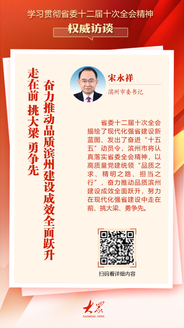 省委十二届十次全会绘制了建设现代化强省新蓝图,发出了“十五五”规划动员令。滨州市将忠实贯彻省委全会精神,以高质量党的建设引领“精品工程、智慧道路、责任行动”,着力推动滨州建设质量成果全面提升,为建设现代化强省争当先、先行、先行。锚定“品质需求”。坚持“形态、商业、生态、文化、品质五方面”,建设人民满意的高品质城市,打造绿色低碳高质量发展先行区的“滨州模式”。杜采取“明智之道”。坚持政府主导、市场主导、企业主导、高校主导、人才为本“五大支柱”坚持“高端传统产业、规模化新兴产业、特色产业园区并举”的“四化”,推动未来产业科学融合、不断融合。和现代技术和产业创新,催生更多新生产力。继续打好招商引资、项目建设、工业经济“三大攻坚战”,规划实施1100多个大型项目,总投资超过1.4万亿元。到2030年,实现新增能源装机超过2000万千瓦,“5210N”产业集群收入超过2万亿元。落实“问责宗旨”。着力凝聚官员创业履责的强大合力,不断深化他提出“三大行动”。深化增强市场主体活力行动,牢固树立“企业舒心、企业家舒心”理念,推动企业家圆梦、企业创造世界等行动,让市场主体放心投资、舒心经营、安心发展。深化提高干部内生动力的行动,促进信念思想提升,激励党员干部主动作为、全心全意工作、勇于担当。深化提升风险防范能力行动,实施安全、职业保障、住房保障、平安、安心“五保”工程,加快推进“平安城市”建设,以高水平保障、高质量发展确保长治久安。 (大众新闻记者王凯编译)